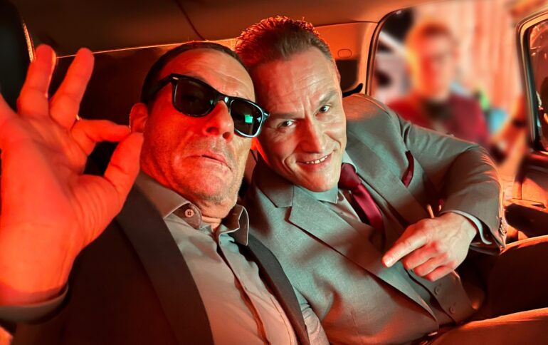 Going into that fight, as I said, at that age, I obviously tried to be more careful with him, but he was really sharp. He still knew how to do everything and he was like classic JCVD. I was watching him back in the Soviet Union when it collapsed; we were watching all his VHS tapes with really bad quality. That’s how I remember him from then and he’s still that way now. All his moves, how he does his hits and kicks and stuff like that. There was a cold day and it was raining a little bit, so everything was wet and cold. We shot overnight as well. The scene took probably, I want to say at least seven hours to shoot and he was right there. We were shooting on location so there wasn’t much luxury around us, like tents and all that stuff because we drove from the campsite to the location. It was basically all that physical stuff. He said he only had an apple box to sit on between takes. He took it as a champ and the fight was great. He’s been doing it for forever, so he understands all the movements; he understands all the trajectory, how he’s gonna go and what has to be done. He even gave suggestions about where to put the camera, and which angle to shoot, but it was really cool. Back in the days if somebody told me I will be working with JCVD I would be laughing in the face of that person. It’s so cool watching him doing all these things. Not just watching but participating in it; he’s a gentleman as well. Always trying to make sure you’re okay; even just the choreography with all these little details, they draw the picture of what kind of person he is.