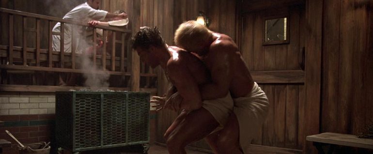 I consider Maximum Risk one of JCVD’s more underrated movies; it has some solid action scenes and this gravity defying scene has Van Damme fighting multiple adversaries in a sauna and they all still manage to keep their towels on which has to some form of sorcery.
