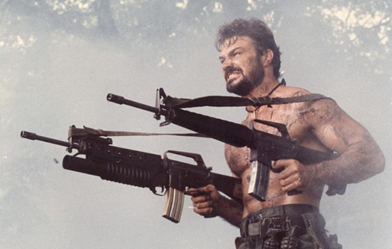 Plot: Jack Mannigan (George Nicholas) assembles a team of fellow American Wardogs to overthrow an evil dictator in the Central American country of Cenagua. Their mission also requires them to save four American hostages and recoup crates of guns. The target is General Alfuero (Monty), and Mannigan’s team consists of Hang Sang Kook (Tsai), Frank Stack (Anderson) and Bill Peters (Moss).
