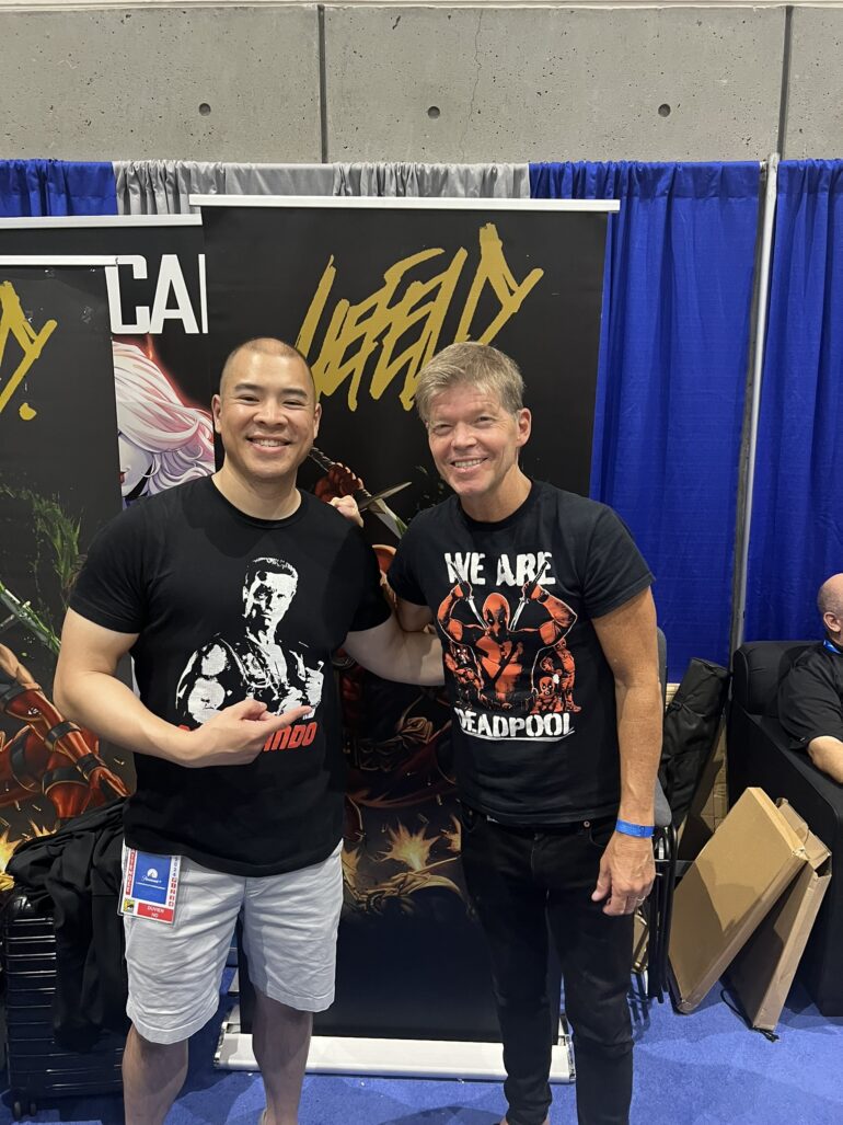 On the show floor it was time to hit Rob Liefeld’s booth, the creator of Deadpool, Cable and the Extreme Universe, the man has had quite the week traveling to New York for the Deadpool & Wolverine premiere, getting caught up in the CrowdStrike glitch then coming right back to California for the con. Liefeld was in good spirits and is always good to his supporters. Gerry Conway, co-creator of The Punisher and co-writer of Conan the Destroyer was signing nearby and I picked up a print as he complimented my Commando shirt featuring Arnold. Over in Hall H, Alien: Romulus sounded like a highlight as they passed out full size face hugger masks to the audience.